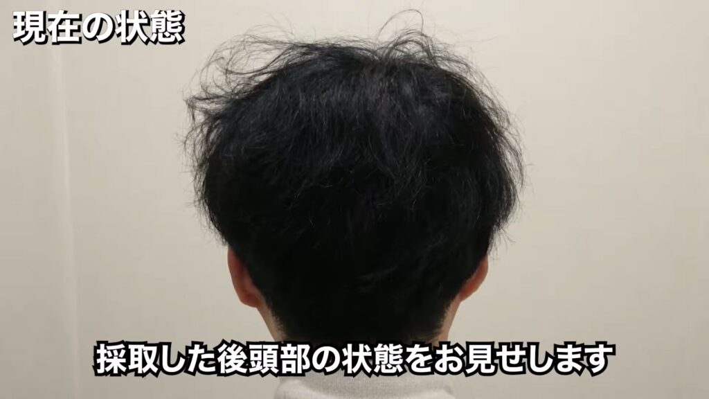 今回2,800グラフト採取した後頭部は、このような状態です。毛量は普通で、若干ハリコシがあります