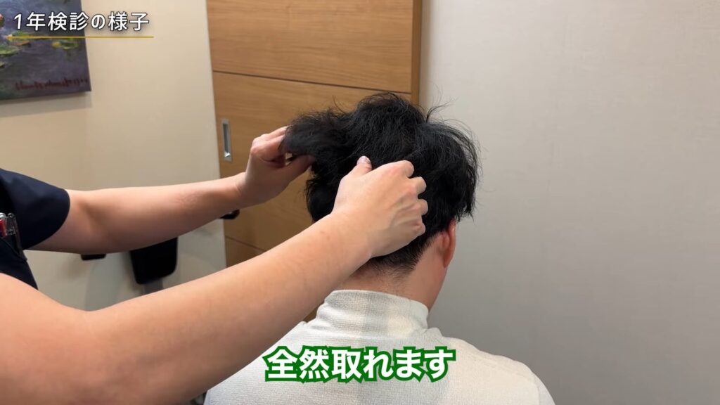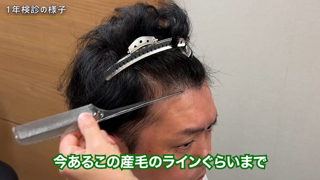 濡れた状態は、クリニック内での撮影だったため今回はありません。モニターさんは、1年検診でもし今度前の部分を移植するならどうなるかを先生に質問していました