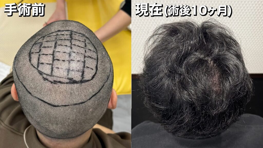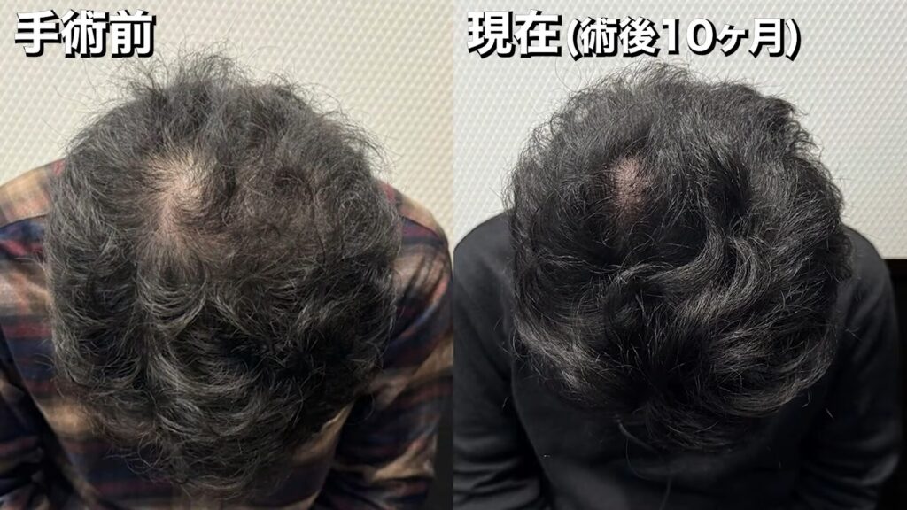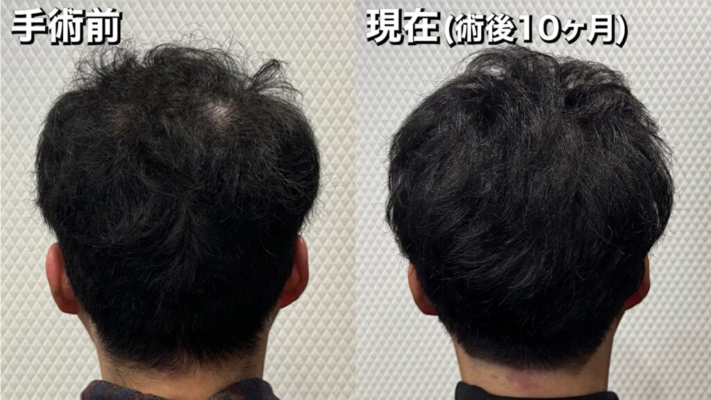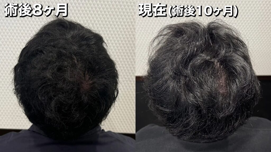 手術前~術後10ヶ月の髪の状態は、このようになっています。