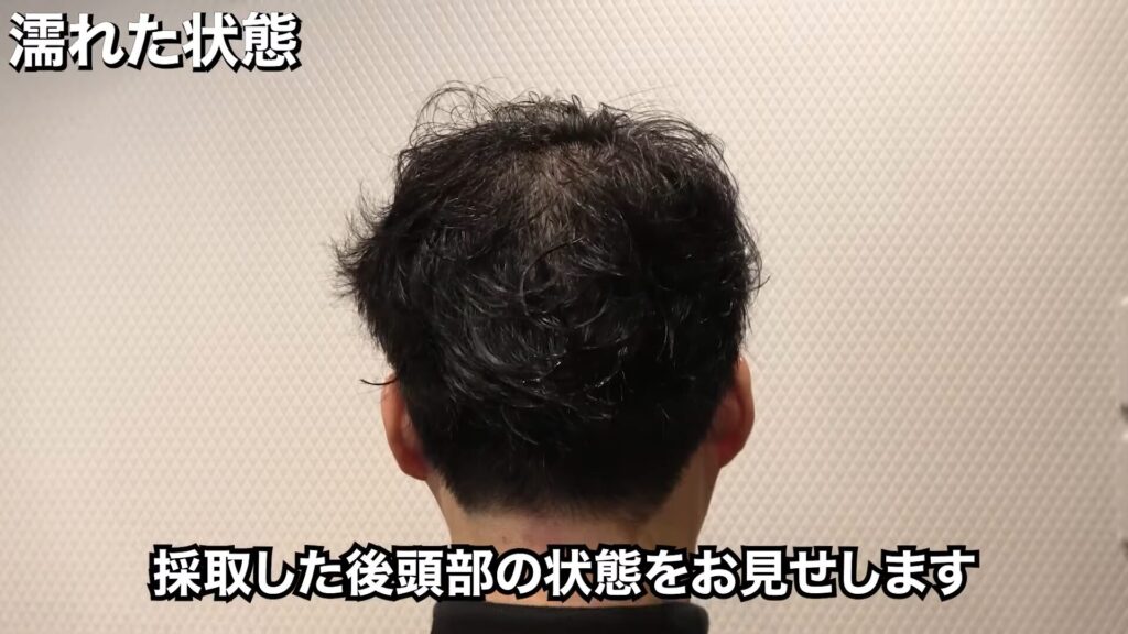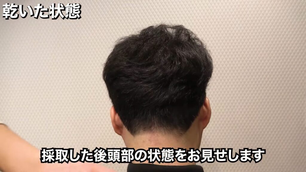 今回2,800グラフト採取した後頭部は、このような状態です。毛量は普通で、若干ハリコシがあります。