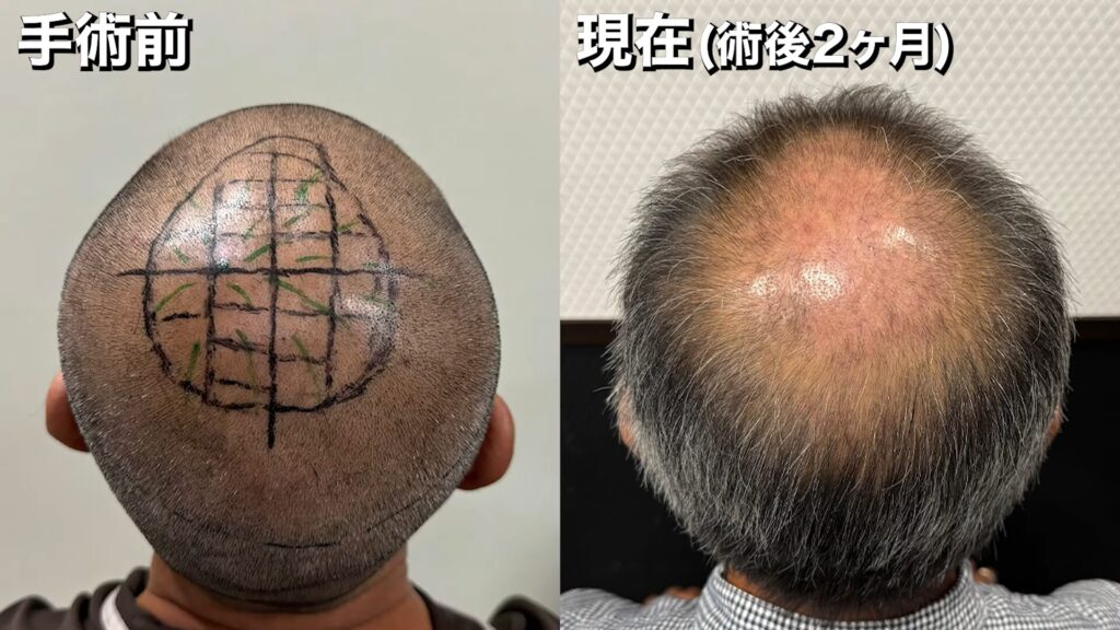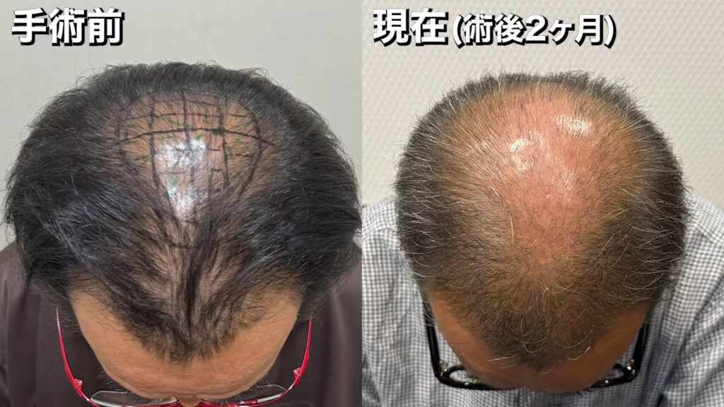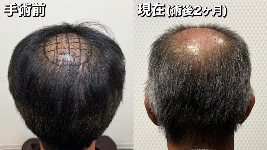• 【植毛2ヶ月】ショックロスがきた!?2,500グラフト移植した60代男性の状態