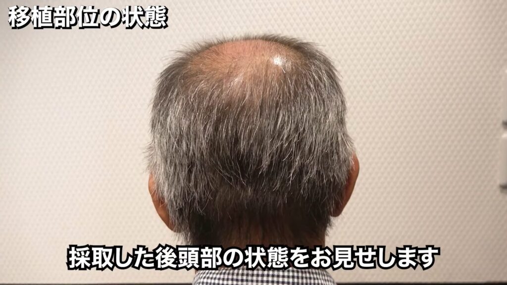 2,500グラフト採取した後頭部の状態は、このとおりです。毛量は多めで、年齢にしてはハリコシがあります