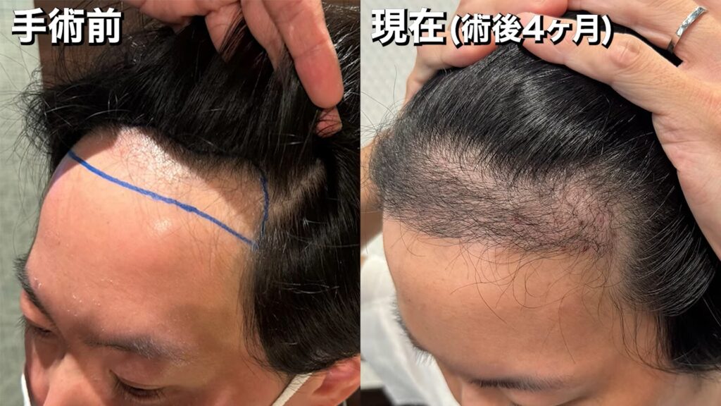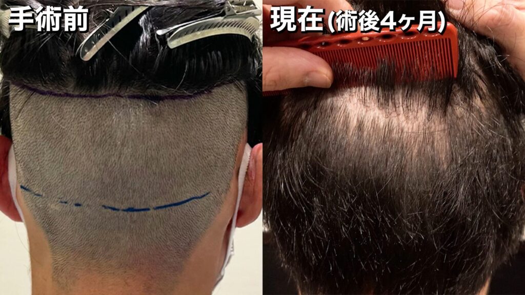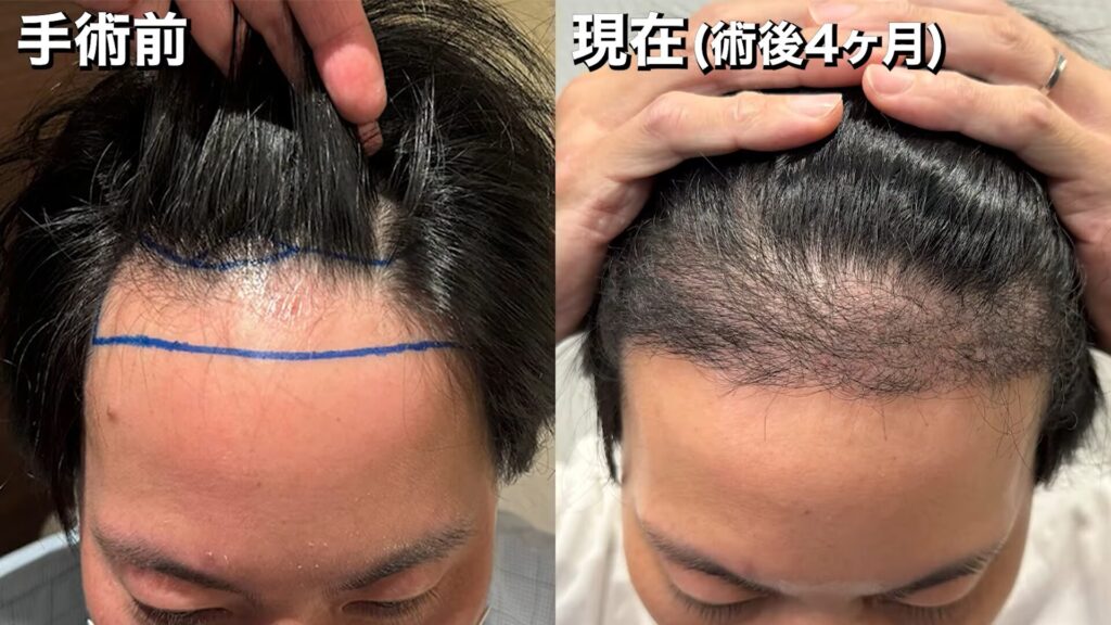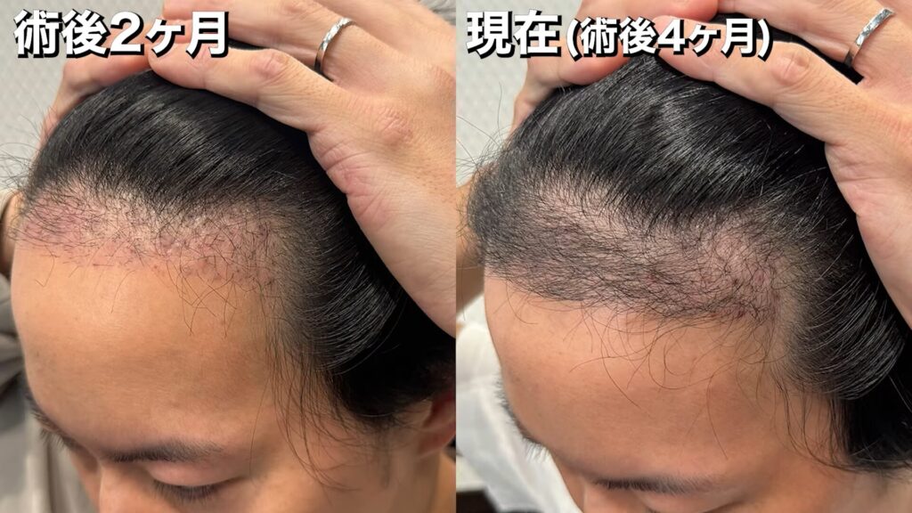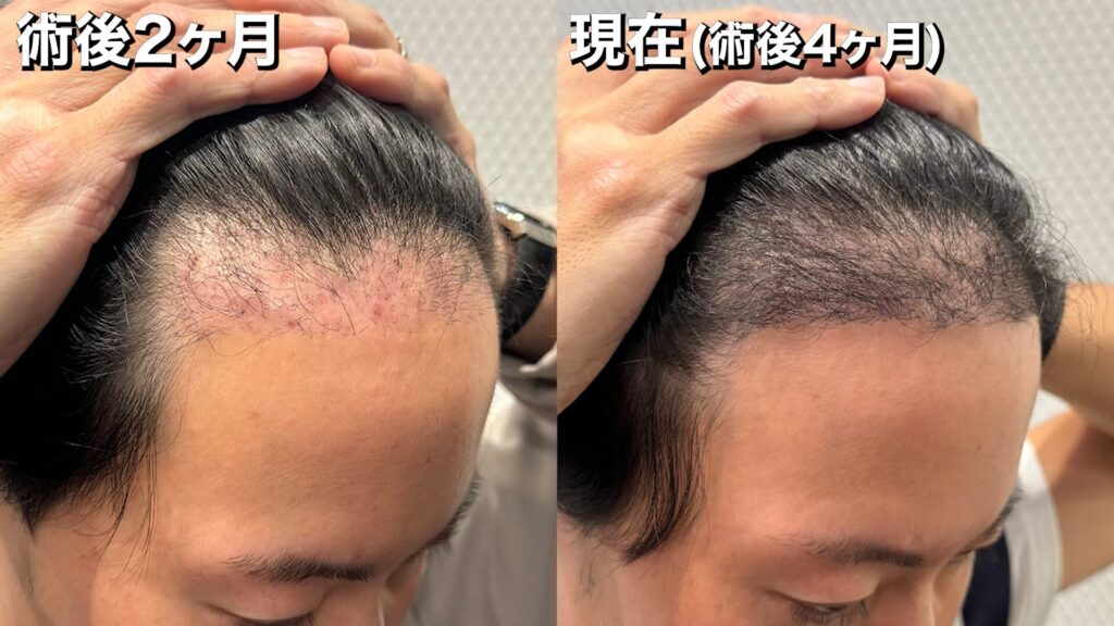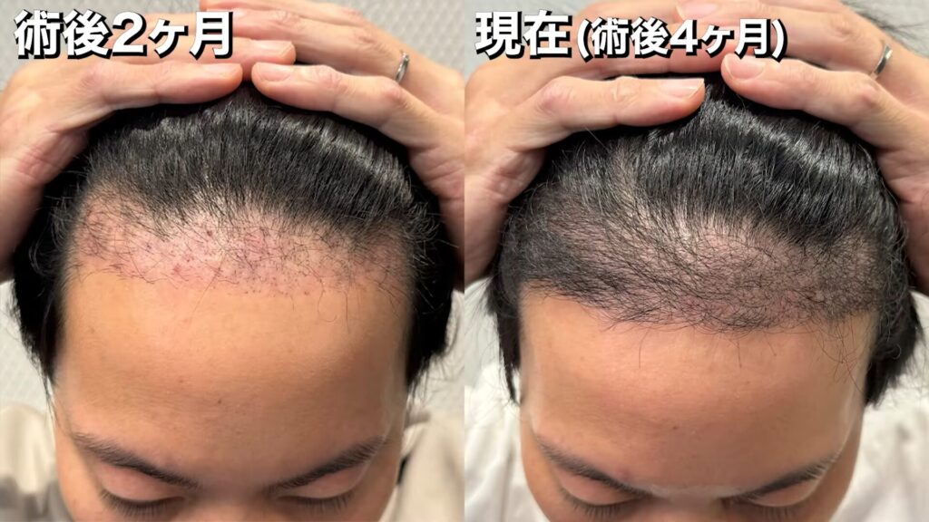 手術前~術後4ヶ月の髪の状態は、このようになっています。