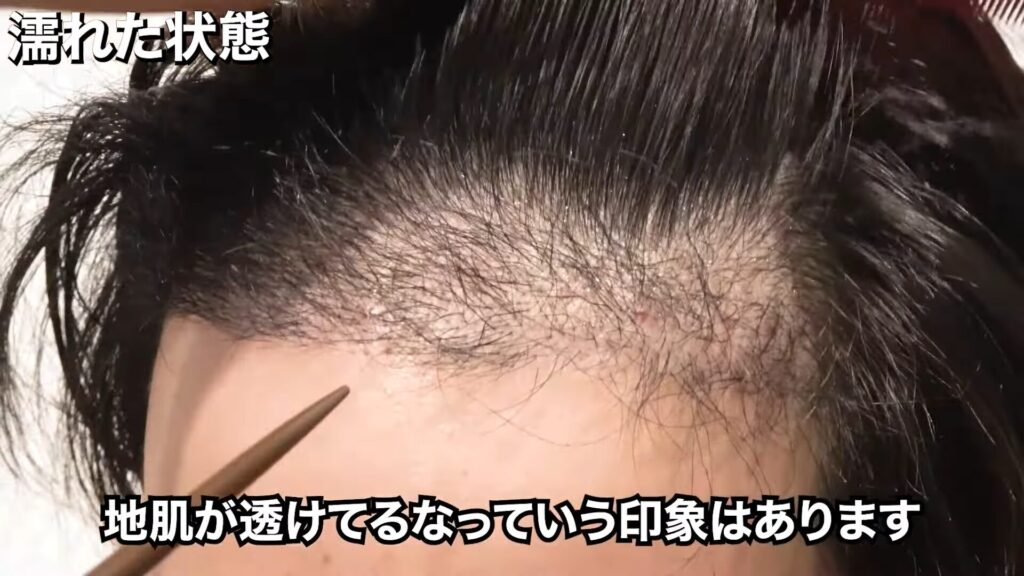 濡れた状態は、このとおりです。やはり、奥の薄い部分は気になる状態です。