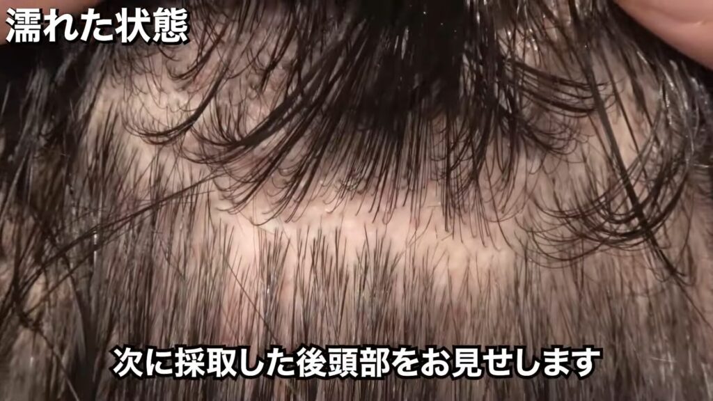 2,000グラフト採取した後頭部の状態は、このとおりです。毛量・毛の太さともに普通くらいでハリコシはあります。