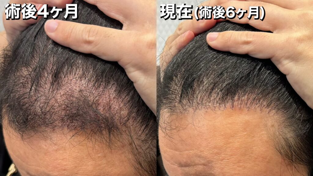 手術前~術後6ヶ月の髪の状態は、このようになっています。