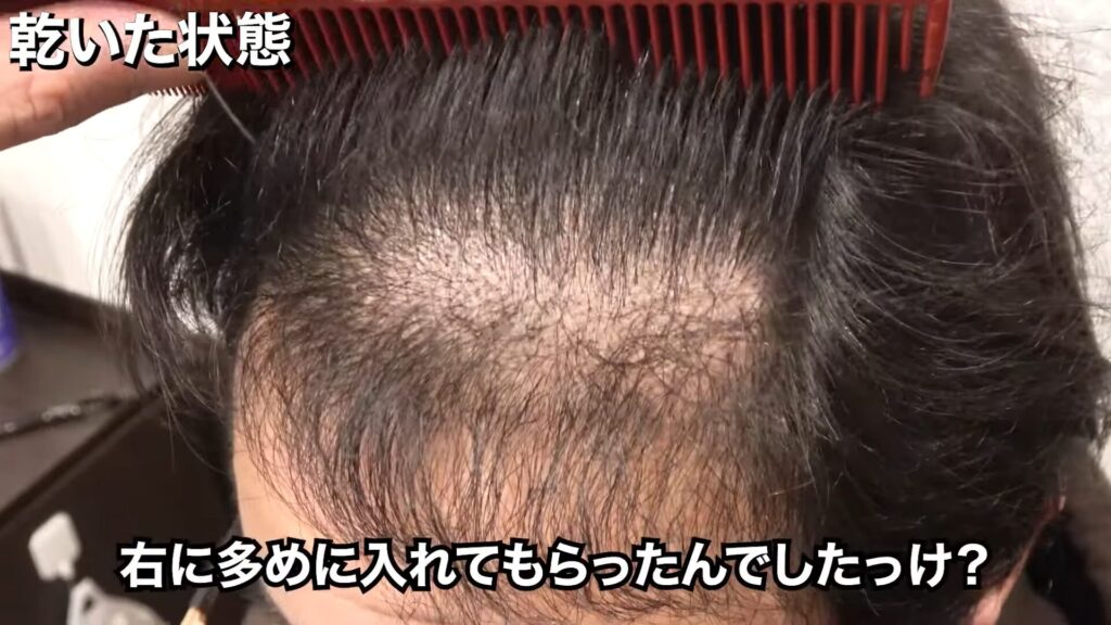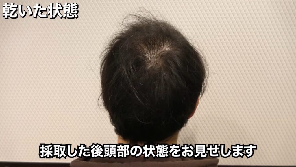 2,600グラフト採取した後頭部は、このような状態です。髪質の特徴は、毛量普通くらい・細めです。