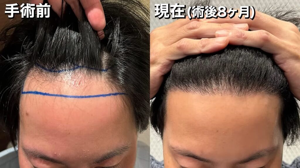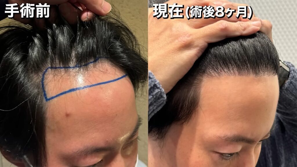 • 【植毛8ヶ月】植毛の成果は?2,000グラフトでおでこを狭くした現在の状態