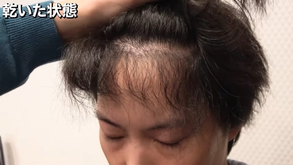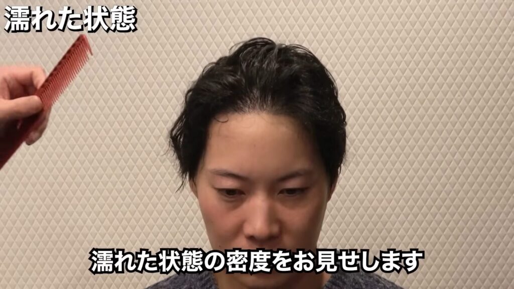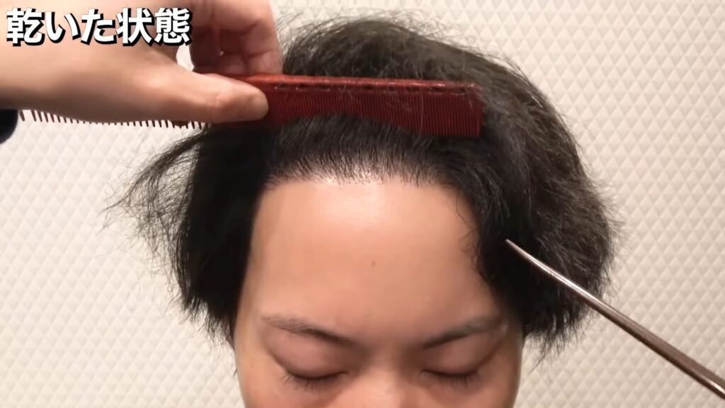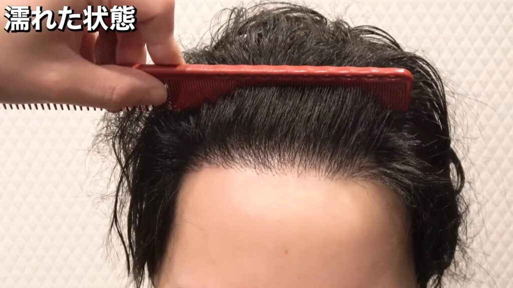 濡れた状態は、このとおりです。やはり縮れが目立ちますが、モニターさんはパーマをかけていきたいそうです