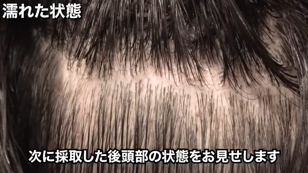 2,000グラフト採取した後頭部の状態は、このとおりです。毛量・毛の太さともに普通くらいでハリコシはあります