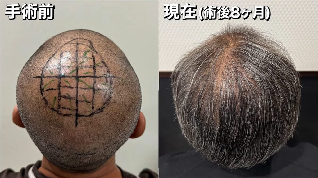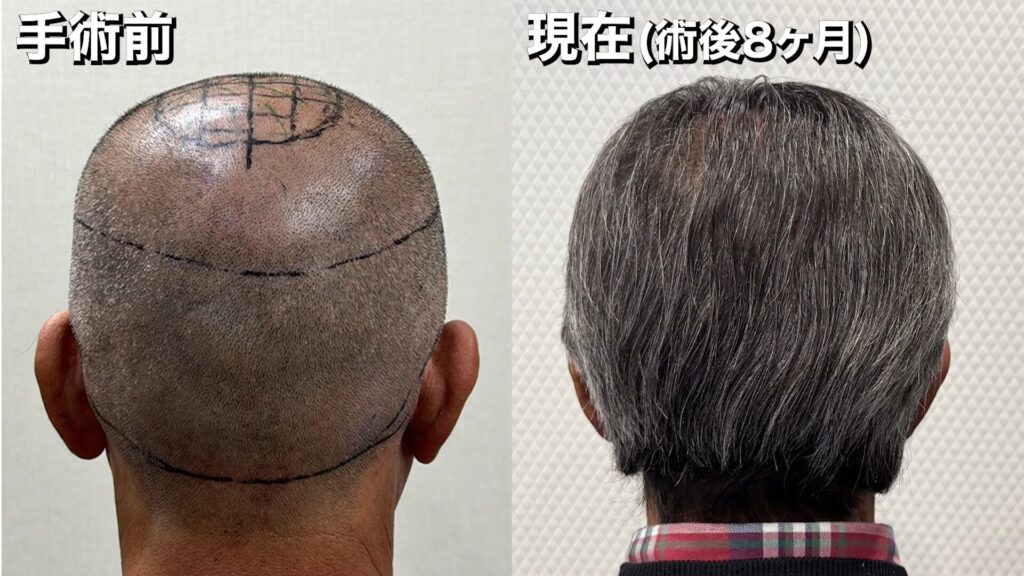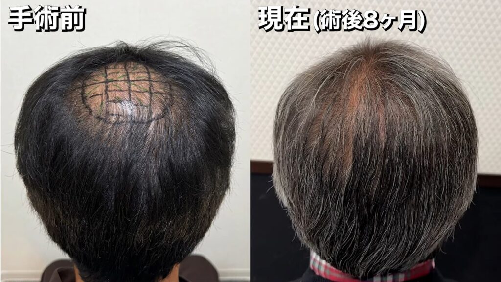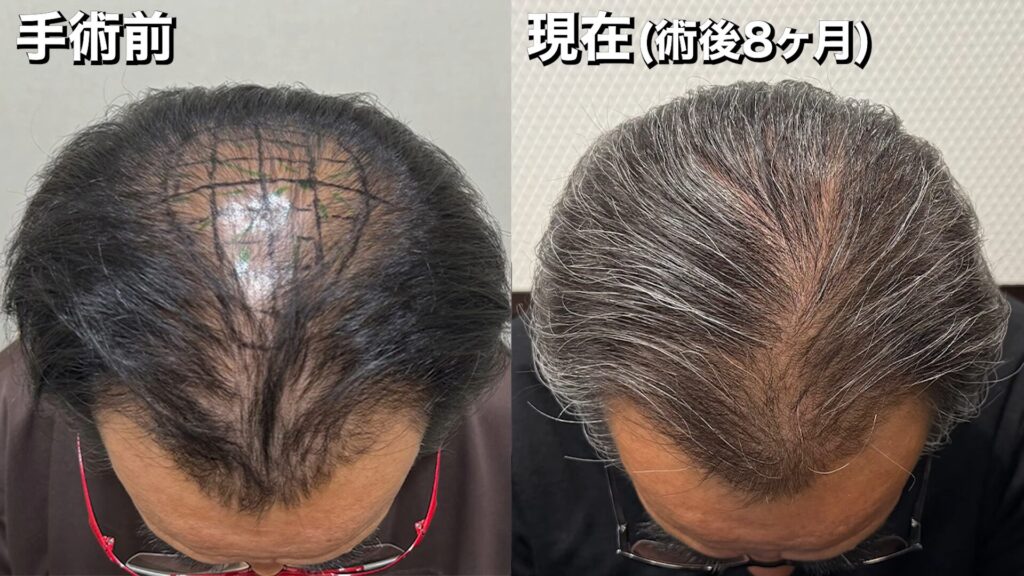 【植毛8ヶ月】植毛前と比べるとどう?頭頂部に2,500グラフト移植した60代男性の現在