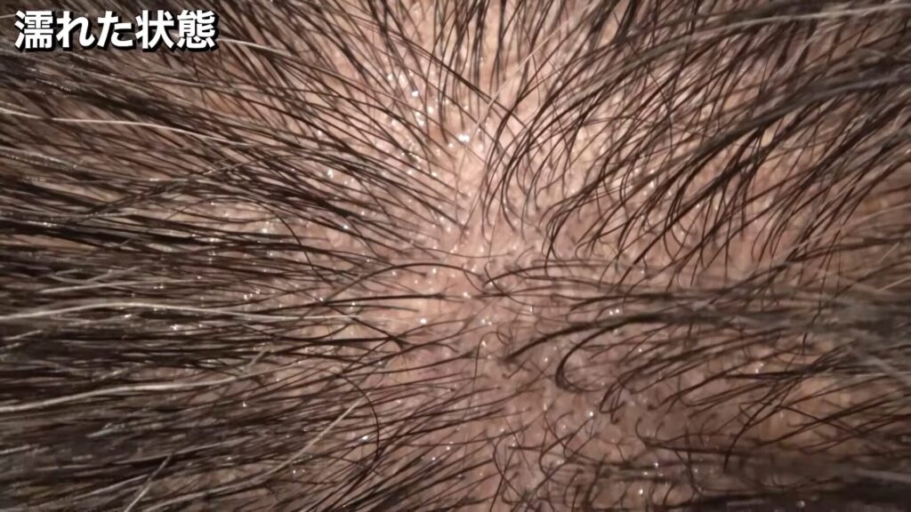 乾いた状態は、このとおりです。地肌の透け感はなくなってきているように感じます