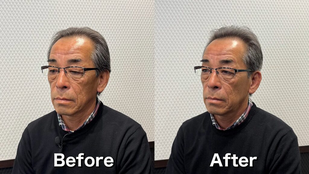 濡れた状態は、このとおりです。手術前と比べると、違いがはっきり分かると思います