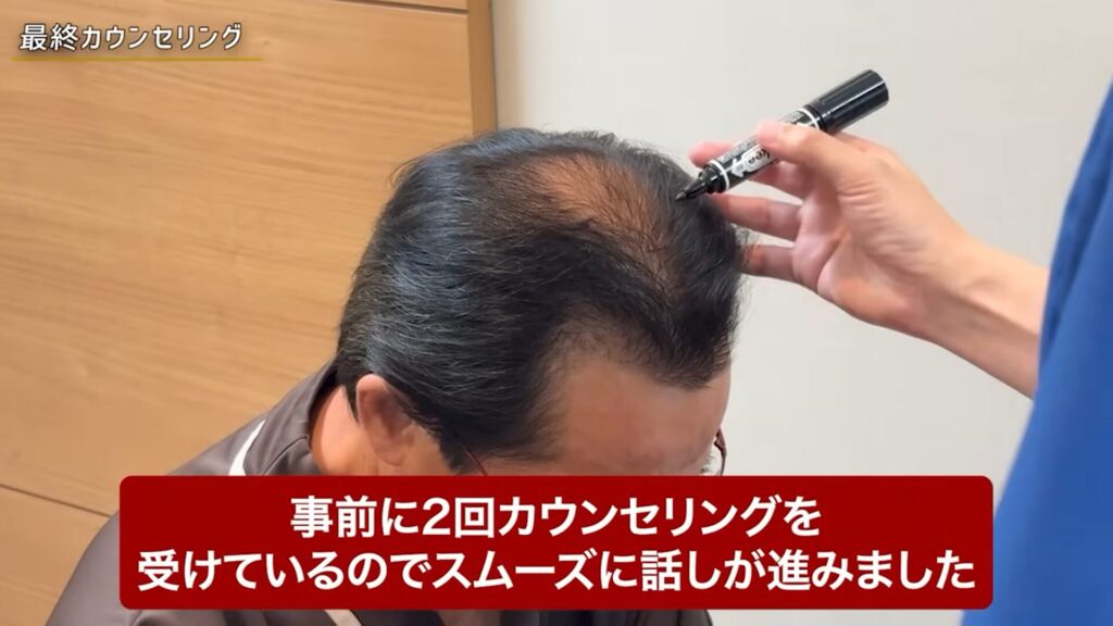 最終カウンセリングでは、植毛する場所やグラフト数などの最終確認を行います
